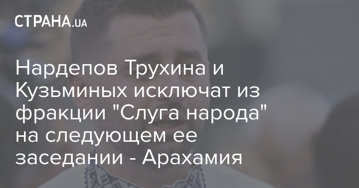 Глава фракции "Слуга народа" Давид Арахамия сообщил, что на следующем заседании фракции Александра Трухина, попавшего в скандал с ДТП, и Сергея Кузьминых, которого НАБУ задержало за взятку, исключат из фракции. Однако подписи за исключение ещё не собирали.