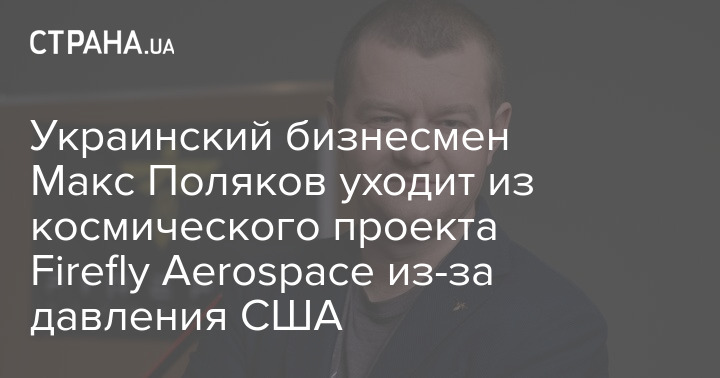 Украинский бизнесмен Макс Поляков уходит из космического проекта Firefly Aerospace из-за давления США
