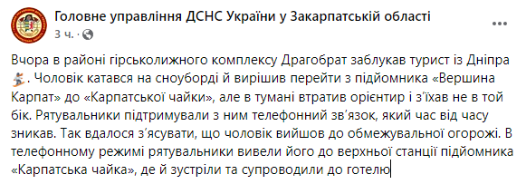 Также мы сообщали, что в Карпатах спасатели пять часов искали заблудившихся в тумане лыжников.