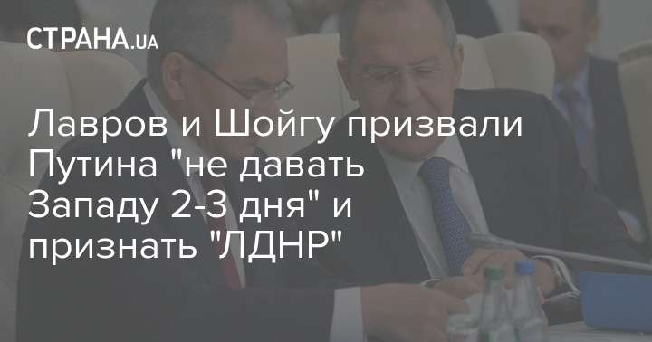 Министр иностранных дел Российской Федерации Сергей Лавров предлагает не давать Западу "2-3 дня" на убеждение президента Украины Владимира Зеленского в необходимости выполнять Минские соглашения. Лавров смысла в этом не видит. И предлагает признавать "ЛДНР".