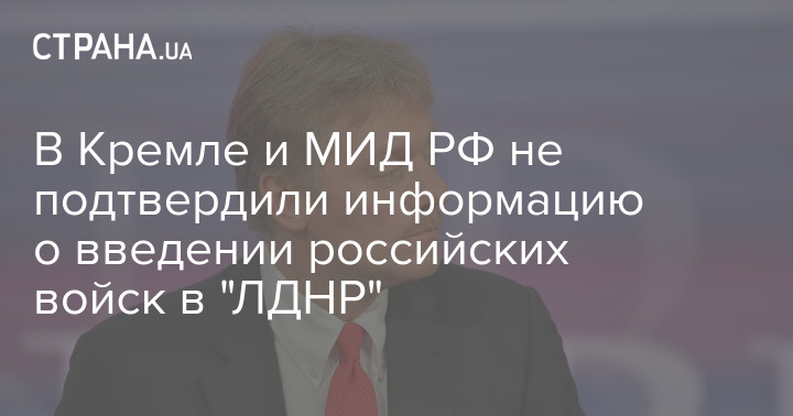 Пресс-секретарь президента РФ Дмитрий Песков заявил, что ему ничего не известно о том, что ночью в "ЛДНР" были введены российские военные. Он не подтвердил эти сообщения.
