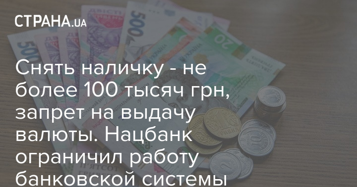 Снять наличку - не более 100 тысяч грн, запрет на выдачу валюты. Нацбанк ограничил работу банковской системы