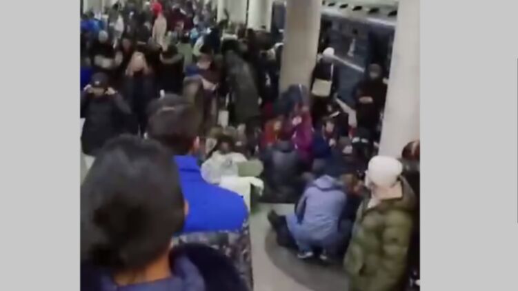 В Харькове люди прячутся от обстрелов в метро. Скриншот видео