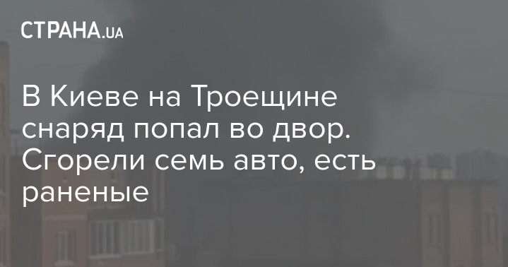 В Киеве на Троещине снаряд попал во двор. Сгорели семь авто, есть раненые