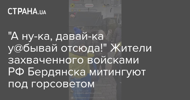 В Бердянске Запорожской области, который контролируется российскими войсками, люди собрались возле горсовета и призывают их покинуть город.