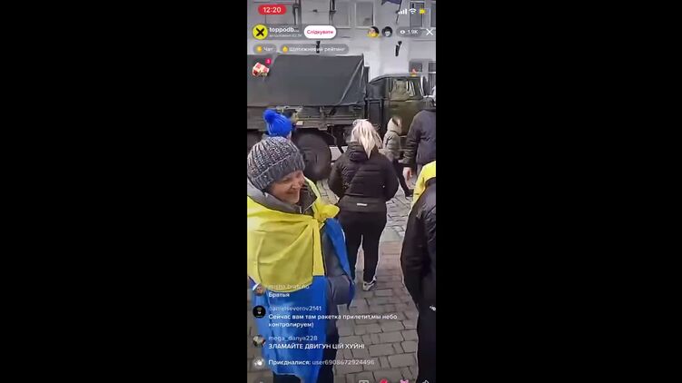 Люди требуют от российских военных покинуть Бердянск. Скриншот из видео