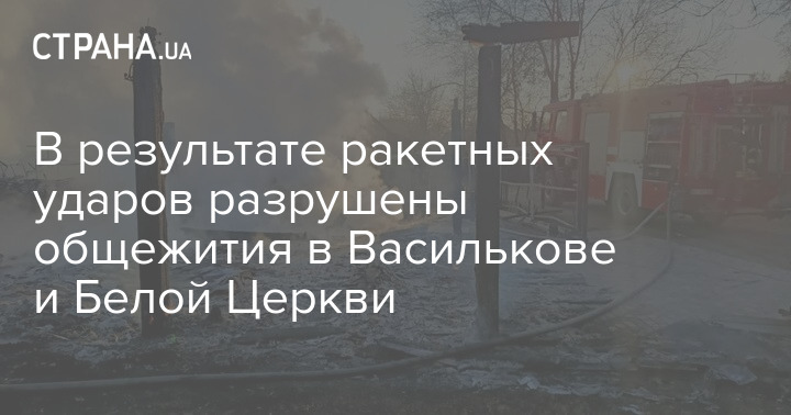 В результате ракетного удара в Киевской области разрушены два общежития. Одно находится в Белой Церкви, второе - в Василькове.