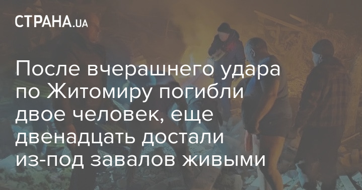 После вчерашнего удара по Житомиру погибли двое человек, еще двенадцать достали из-под завалов живыми