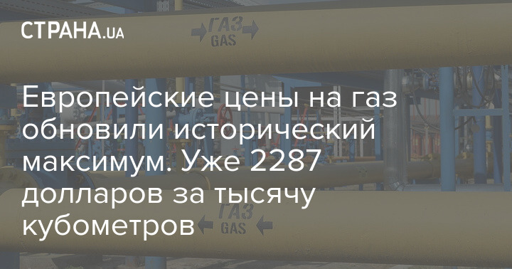 Европейские цены на газ обновили исторический максимум. Уже 2287 долларов за тысячу кубометров