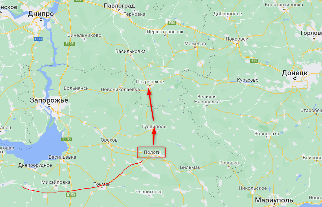 Похоже, той же цели добивается и юго-восточная группировка, которая сегодня, по данным минобороны РФ, заняла Пологи в Запорожской области. А они открывают путь в Гуляй-Поле и далее в сторону Павлограда и трассы из Курахово (Донецкая область).