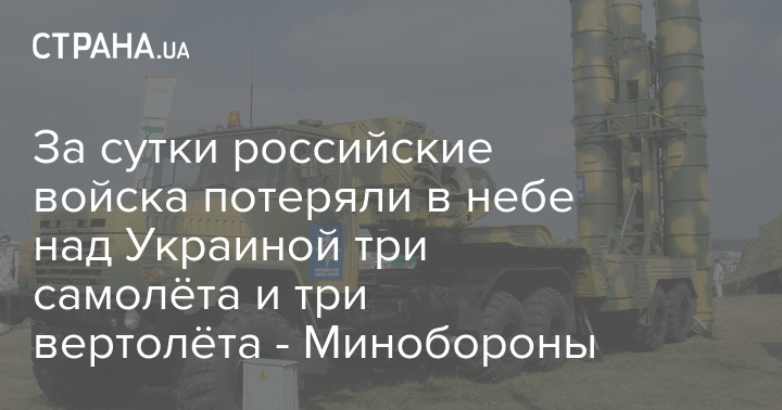 По данным Министерства обороны Украины, за вчерашний день российские войска в небе над Украиной потеряли три самолёта и три вертолёта.