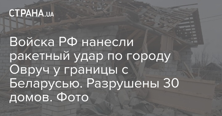 Войска РФ нанесли ракетный удар по городу Овруч у границы с Беларусью. Разрушены 30 домов. Фото