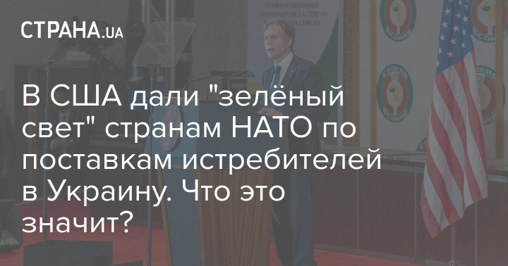 По данным американских изданий, США дали "зелёный свет" передаче Украине боевых самолётов. Об этом сообщил госсекретарь США Энтони Блинкен.