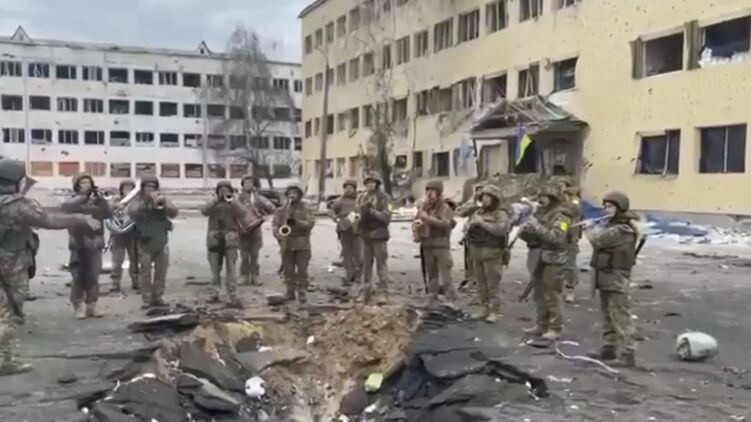 Оркестр Вооруженных сил Украины сыграл национальный гимн возле воронки от снаряда. Видео
