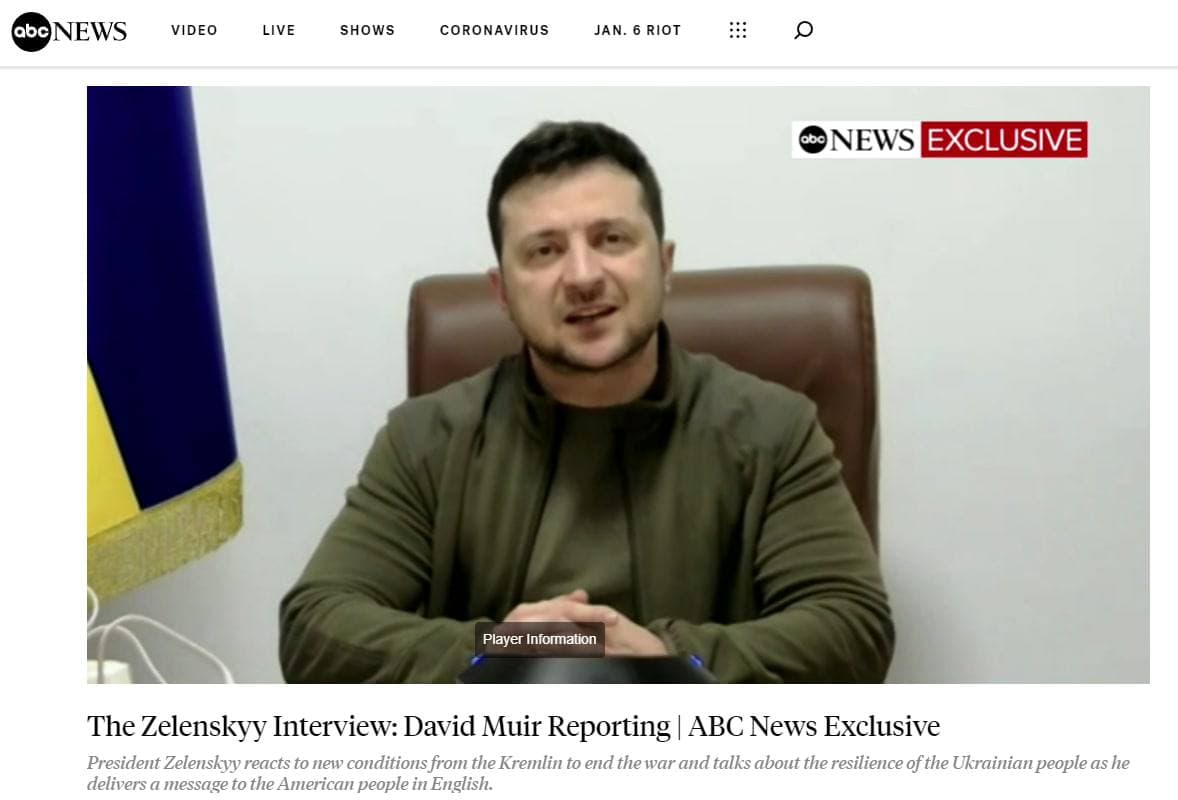 09:35 Зеленский дал интервью американской телекомпании ABC, в котором ответил на требования, которые выдвигает Путин.