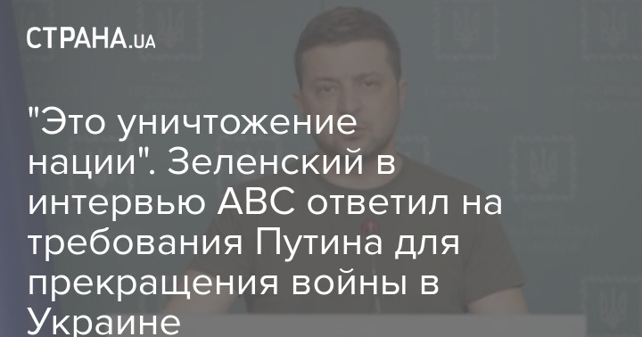 Президент Украины Владимир Зеленский дал интервью американской телекомпании ABC, в котором ответил на требования, которые выдвигает Владимир Путин для прекращения нападения на Украину.
