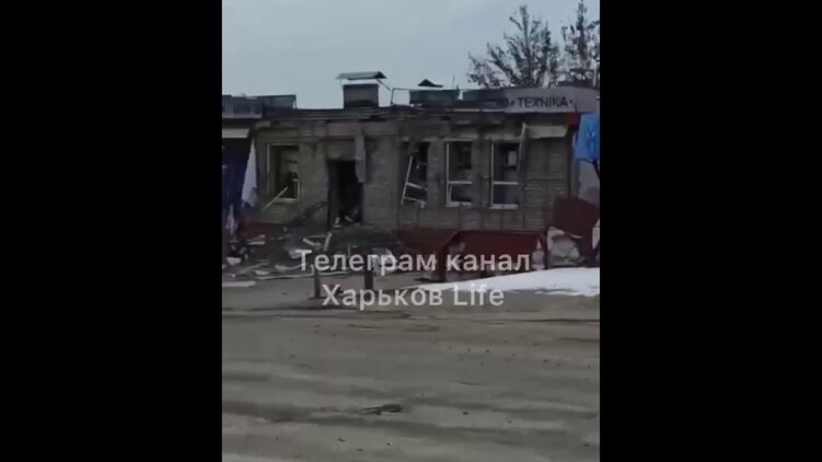Опубликовано видео, на котором запечатлены улицы Изюма, видны разрушенные дома, магазины.