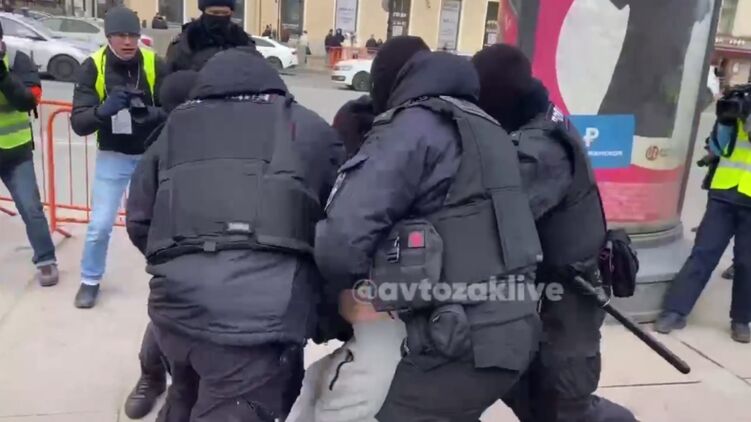 В Санкт-Петербурге россияне вышли на антивоенную демонстрацию. Правоохранители жестко задерживают ее участников.