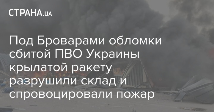 Под Броварами обломки сбитой ПВО Украины крылатой ракету разрушили склад и спровоцировали пожар