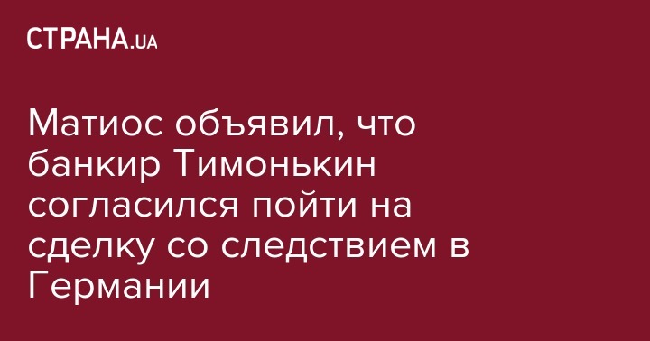 "Пришло сообщение из органов прокуратуры Германии. Немецкая прокуратура согласовала поездку представителей генеральной прокуратуры Украины (ГПУ) в Германию, где господин Тимонькин дал согласие на общение с органами прокуратуры, в частности поеду я, и (есть - прим.) возможность дачи согласия на сотрудничество со следствием, на заключение сделки, с разоблачением лиц, которые давали команды", - заявил Матиос в телеэфире.