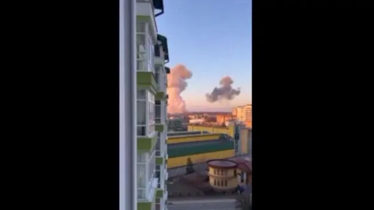 В это же время, по Ивано-Франковску также был нанесен удар. По информации местных жителей, снаряд упал в стороне аэродрома. На кадрах с места событий видны огромные столпы дыма.