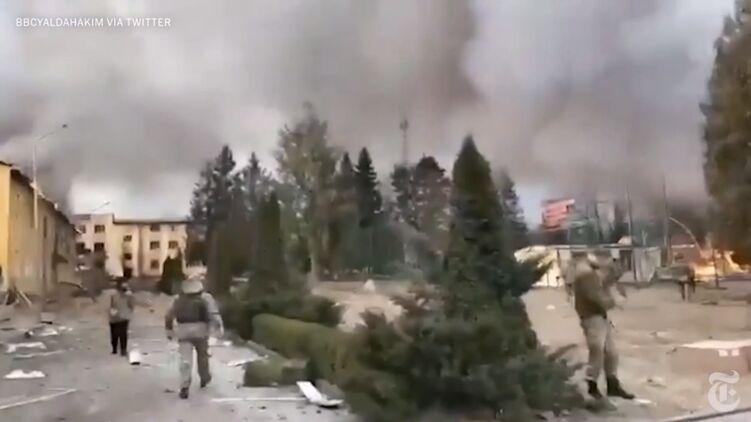 The New York Times опубликовало кадры момента нанесения удара по Яворовскому полигону от лица англоговорящего человека, который ведет съемку ракетных прилетов, находясь непосредственно на месте событий.