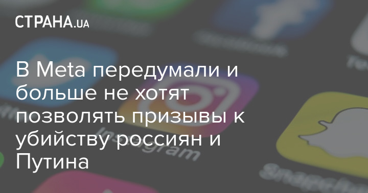 На прошлой неделе в компании Meta объяснили, что призывы вроде "смерть российским оккупантам" в Facebook и Instagram будут разрешены только в Украине, позволяя местным пользователям "высказывать гнев" в адрес войск РФ.