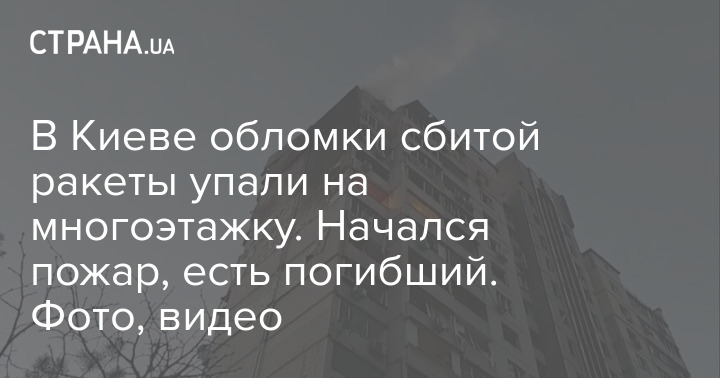 В Киеве обломки сбитой ракеты упали на многоэтажку. Начался пожар, есть погибший. Фото, видео