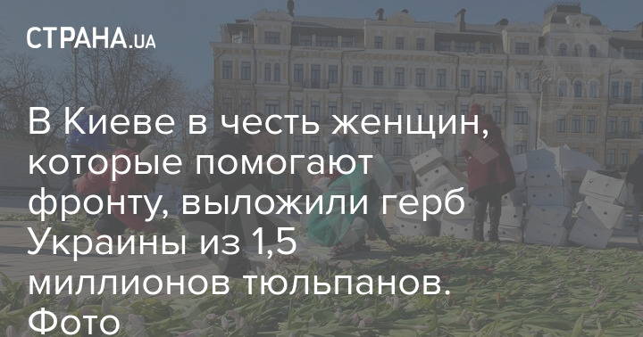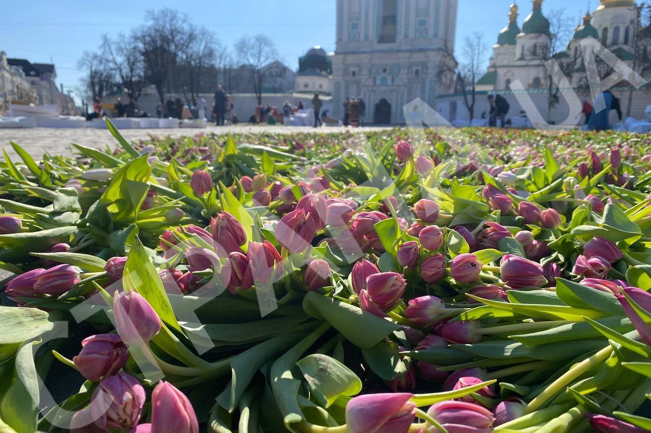 В столице на Софийской площади киевляне выложили герб Украины из полутора миллионов тюльпанов.