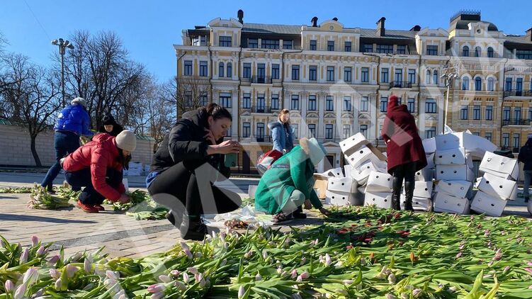 По словам волонтеров, после акции цветы развезут по больницам и госпиталям, полевым кухням и швейным мастерским, чтобы поддержать украинок, которые помогают армии.