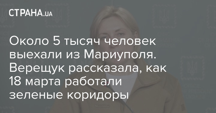 "Сегодня работал гуманитарный коридор Мариуполь - Запорожье. Около 5 тысяч человек выехало, сейчас ещё ждём 5 автобусов с 500 человек. Из Сум к концу дня выедут примерно 8 тысяч человек", - сказала она.