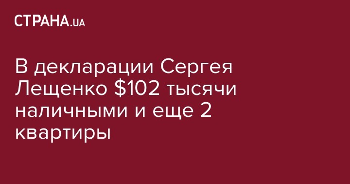 В декларации Сергея Лещенко $102 тысячи наличными и еще 2 квартиры