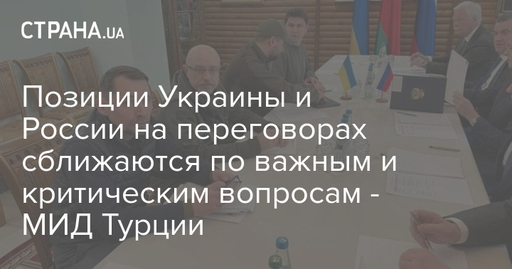 Министр иностранных дел Турции Мевлют Чавушоглу заявил, что позиции по критическим вопросам на переговорах Украины и России сблизились.
