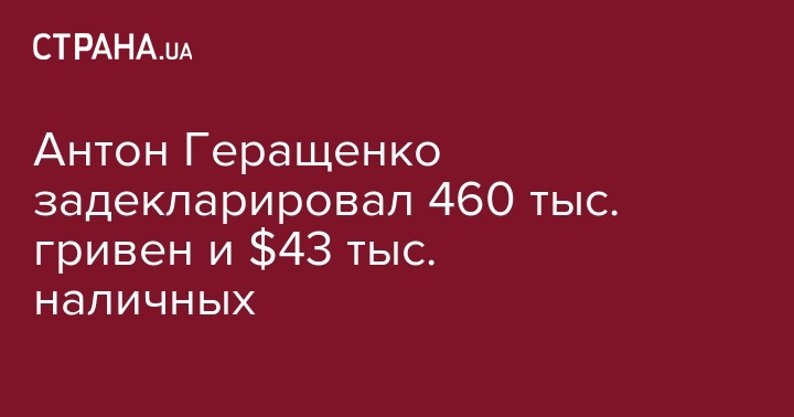Антон Геращенко задекларировал 460 тыс. гривен и $43 тыс. наличных