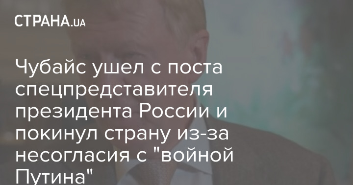 По словам собеседников агентства, Чубайс ушел в отставку и покинул страну, "сославшись на свое несогласие с войной президента Владимира Путина в Украине".