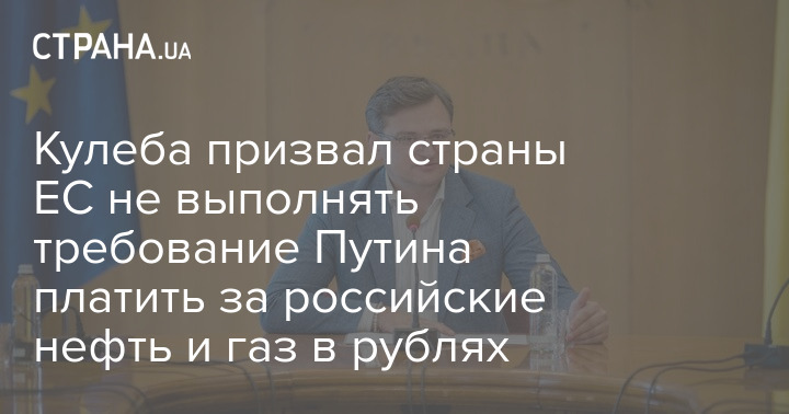 Кулеба призвал европейцев не вестись на требования президента РФ Владимира Путина по оплате газа и нефти в рублях