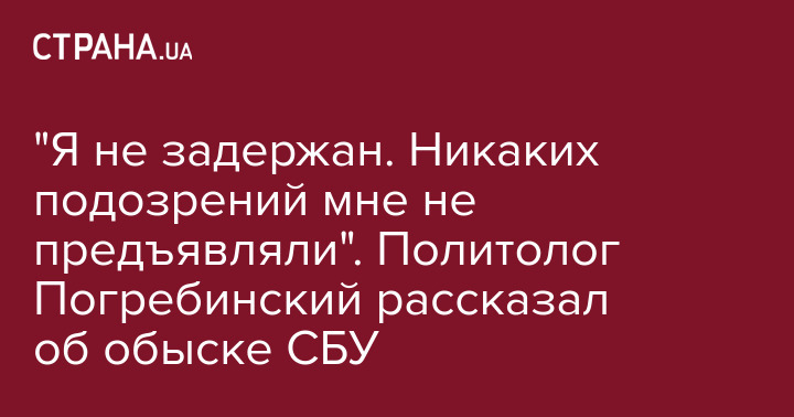 "Я не задержан. Никаких подозрений мне не предъявляли". Политолог Погребинский рассказал об обыске СБУ
