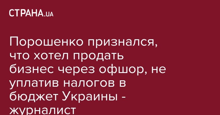 Порошенко признался, что хотел продать бизнес через офшор, не уплатив налогов в бюджет Украины - журналист
