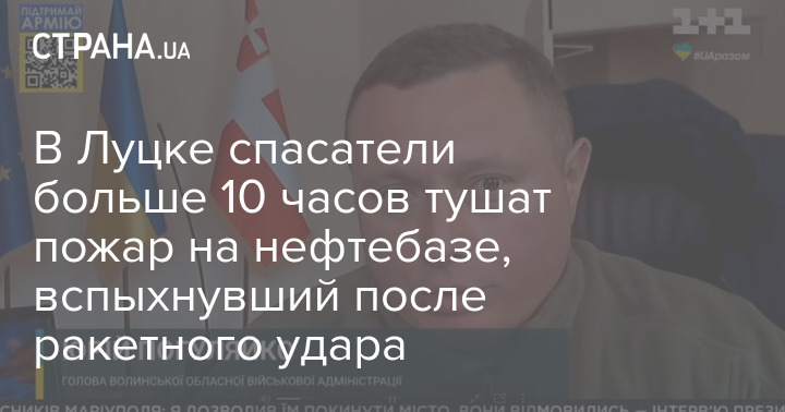В Луцке спасатели больше 10 часов тушат пожар на нефтебазе, вспыхнувший после ракетного удара