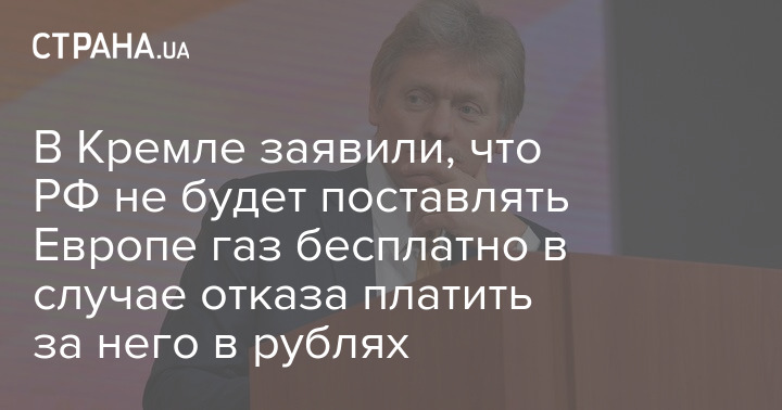 В Кремле заявили, что РФ не будет поставлять Европе газ бесплатно в случае отказа платить за него в рублях