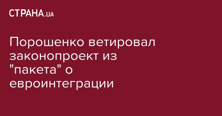 Порошенко ветировал законопроект из "пакета" о евроинтеграции