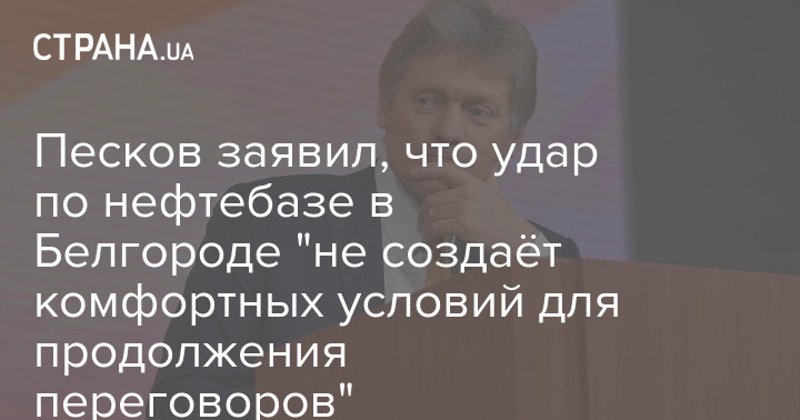 Пресс-секретарь президента России Дмитрий Песков прокомментировал удар по нефтебазе в Белгороде, в котором в РФ обвинили Украину.