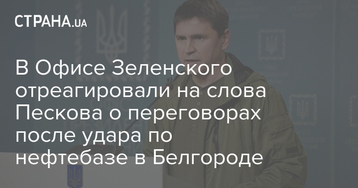 В Офисе Зеленского отреагировали на слова Пескова о переговорах после удара по нефтебазе в Белгороде