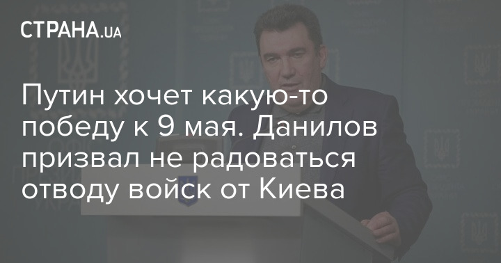 Данилов считает, что Путин попытается одержать где-либо победу до 9 мая, чтоб "провести парад победы". Секретарь СНБО предупредил, что впереди ещё много боев и "расслабляться я никому не советую".