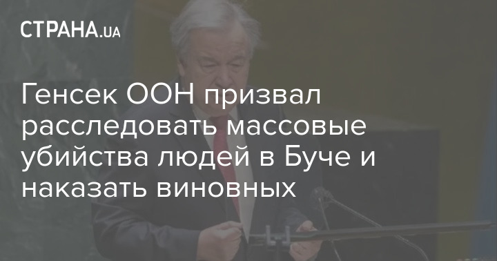 Генеральный секретарь Организации Объединенных Наций (ООН) Антониу Гутерриш заявил о необходимости независимого расследования массовых убийств в Буче.
