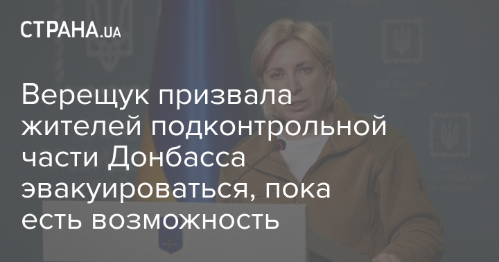 Вице-премьер Ирина Верещук Украины призвала жителей подконтрольной части Донбасса эвакуироваться "пока еще есть такая возможность".