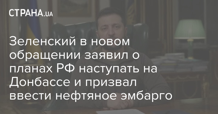 Зеленский в новом обращении заявил о планах РФ наступать на Донбассе и призвал ввести нефтяное эмбарго