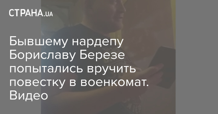 В Telegram-каналах появилось видео, на котором бывшему народному депутату Бориславу Березе пытаются вручить повестку в военкомат.