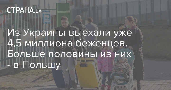 С начала полномасштабного российского вторжения из Украины уже выехали более 4,5 миллиона человек по состоянию на 9 апреля. Такие данные приводит Управление Верховного комиссара ООН по делам беженцев.