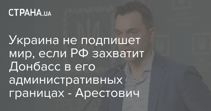 Советник главы Офиса президента Алексей Арестович заявил, что Украина не подпишет мирное соглашение, если Россия захватит Донбасс в его административных границах.